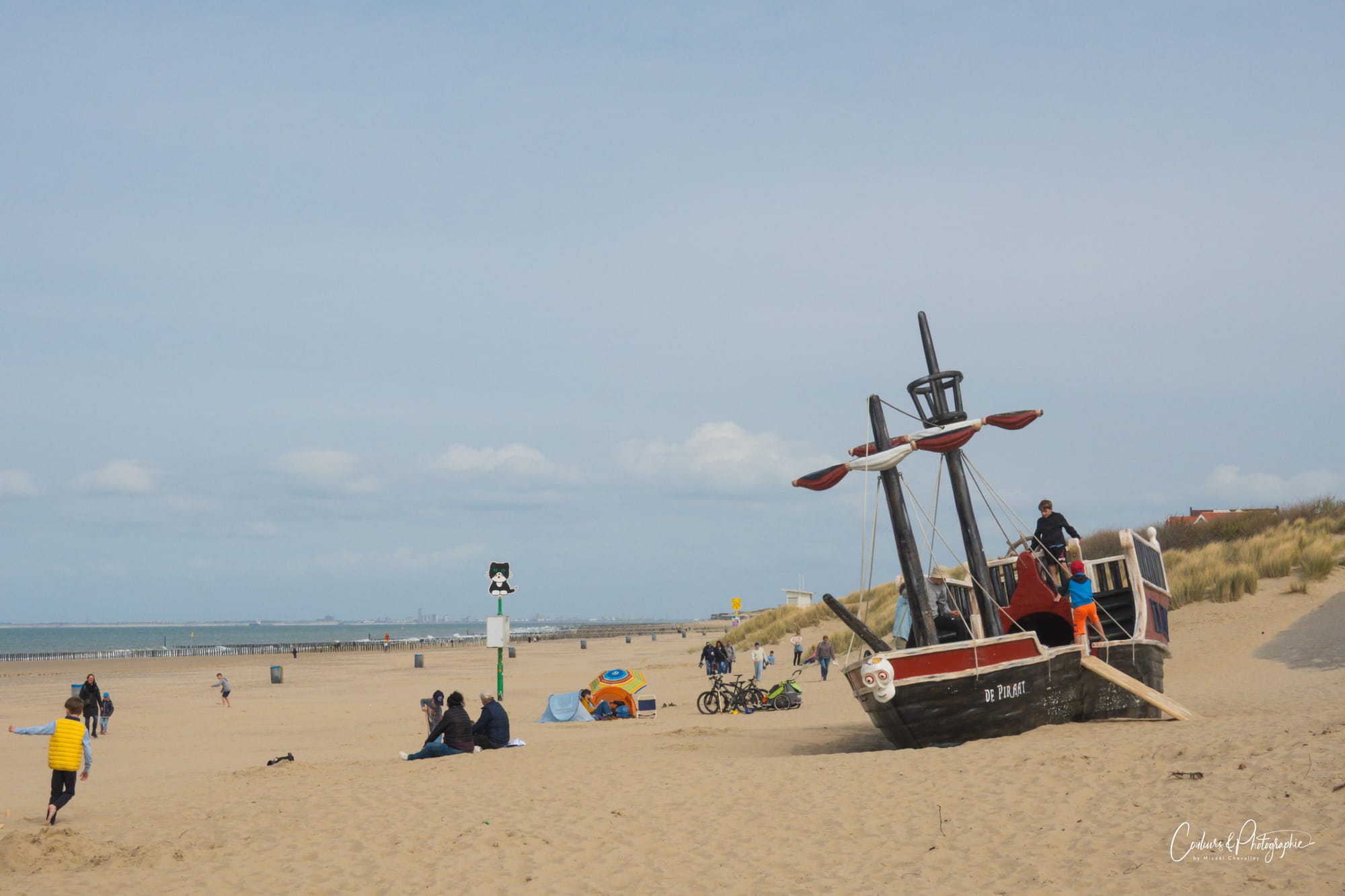 Après la visite culturelle, nous avons pris la route vers la côte. La plage est bien différente de celle où nous résidons puisqu'il n'y a ni immeubles ni chemin bétonné derrière les dunes. C'est plus sauvage, plus comme je j'imagine la mer du Nord dit mon épouse.